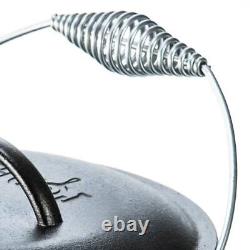The 5-Quart Seasoned Cast Iron Dutch Oven with Lid and Spiral Wire Handle has been popular for over a century and is perfect for camp and hearth cooking. It conducts heat evenly with no hot spots and maintains heat for efficiency and cooking control. Pre-seasoned for a natural, easy-release. Unparalleled in heat retention and even heating. Product Care Instructions: Hand Wash Only.