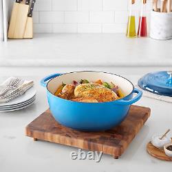 Amazon Basics Faitout en fonte émaillée avec couvercle, 7,3 quarts, bleu.
